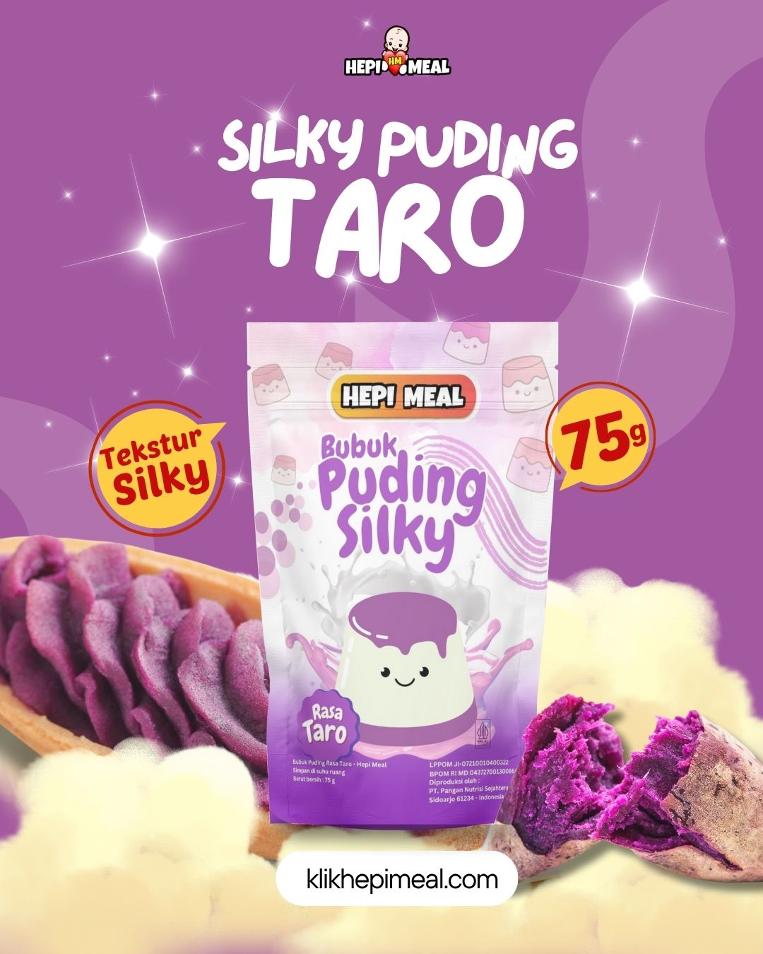 Puding silky rasa Taro (ubi Ungu) ini punya rasa lembut dengan manis alami yang tidak berlebihan.